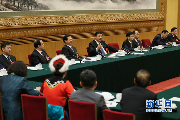 3月7日,中共中央總書記、國家主席、中央軍委主席習(xí)近平參加十二屆全國人大四次會議黑龍江代表團(tuán)的審議。新華社記者蘭紅光