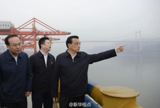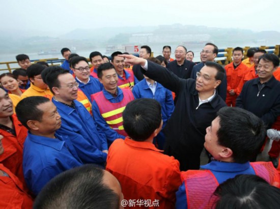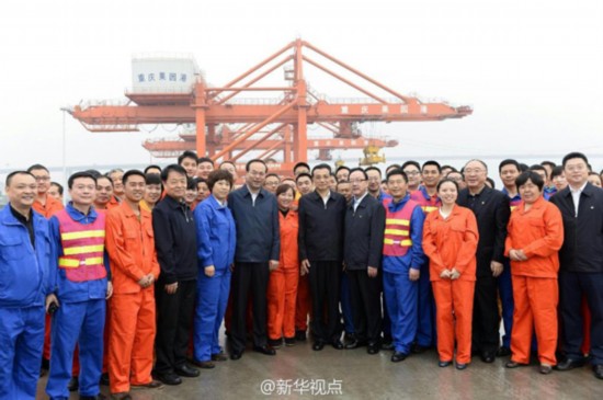李克強(qiáng)考察重慶果園港 鼓勵工人爭當(dāng)?shù)谝?/strong>