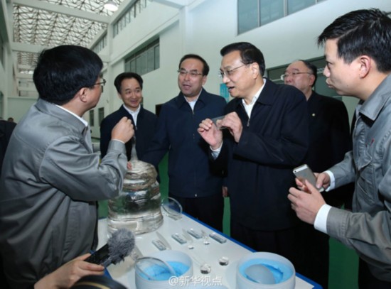李克強(qiáng)總理來到研發(fā)工業(yè)自動控制系統(tǒng)的“重慶川儀”公司考察。在仔細(xì)了解企業(yè)科技創(chuàng)新產(chǎn)品的研發(fā)、生產(chǎn)、銷售情況后,李克強(qiáng)對企業(yè)研發(fā)專家和工人說:“創(chuàng)新是我國產(chǎn)業(yè)升級的必由之路和關(guān)鍵舉措。中國經(jīng)濟(jì)升級,創(chuàng)新是旗幟,是脊梁!靠你們啦!”