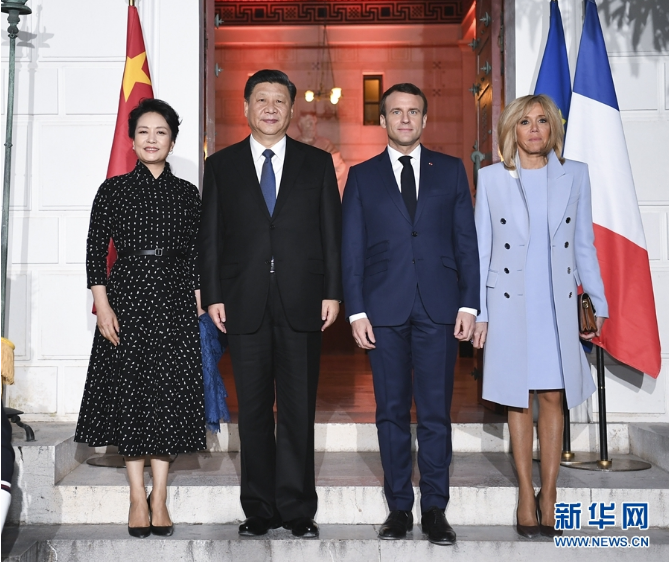 3月24日,國家主席習(xí)近平在尼斯會見法國總統(tǒng)馬克龍。習(xí)近平夫人彭麗媛、馬克龍夫人布麗吉特參加。這是習(xí)近平和夫人彭麗媛同馬克龍總統(tǒng)和夫人布麗吉特合影。 新華社記者 謝環(huán)馳 圖