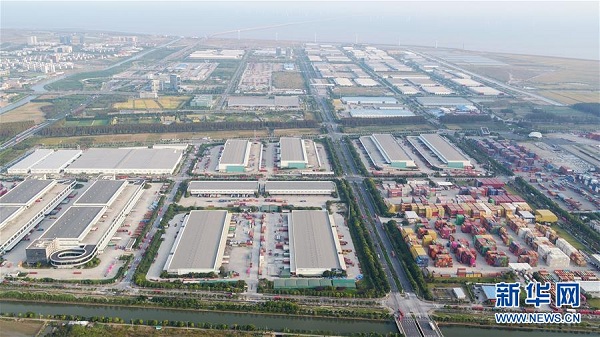 這是2019年10月24日拍攝的中國(guó)(上海)自由貿(mào)易試驗(yàn)區(qū)臨港新片區(qū)一角(無(wú)人機(jī)照片)。新華社記者 丁汀 攝
