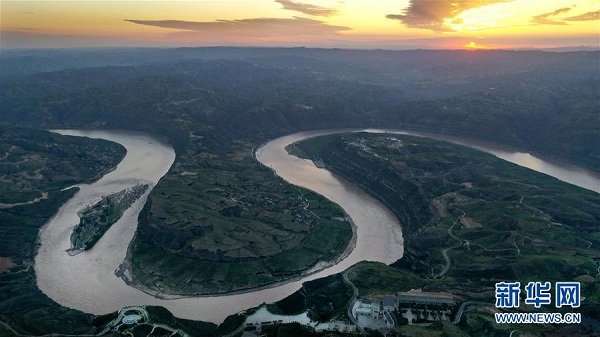 這是2019年8月14日拍攝的黃河乾坤灣景色(無(wú)人機(jī)照片)。新華社記者 陶明 攝