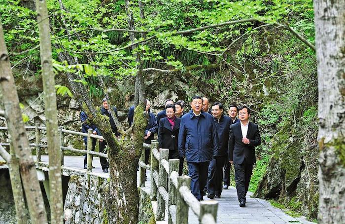 4月20日至23日,中共中央總書記、國家主席、中央軍委主席習近平在陜西考察。這是4月20日,習近平在位于秦嶺山脈東段的牛背梁國家級自然保護區(qū)羚牛谷,了解秦嶺生態(tài)環(huán)境保護情況。新華社記者 謝環(huán)馳 攝這里萬重山,山間滿眼綠。