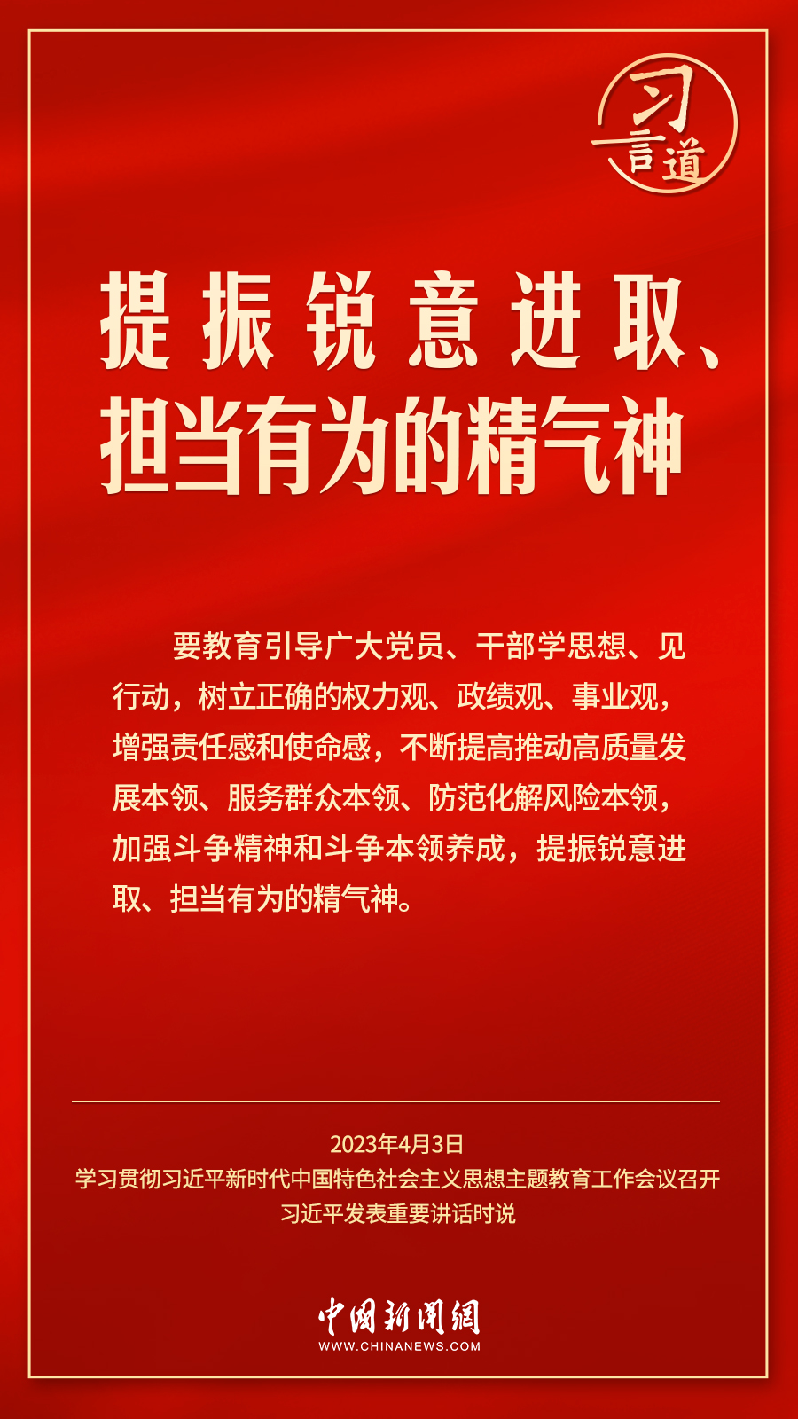 學(xué)習(xí)貫徹習(xí)近平新時(shí)代中國特色社會主義思想主題教育工作會議4月3日在北京召開。中共中央總書記、國家主席、中央軍委主席習(xí)近平出席會議并發(fā)表重要講話。他強(qiáng)調(diào)——