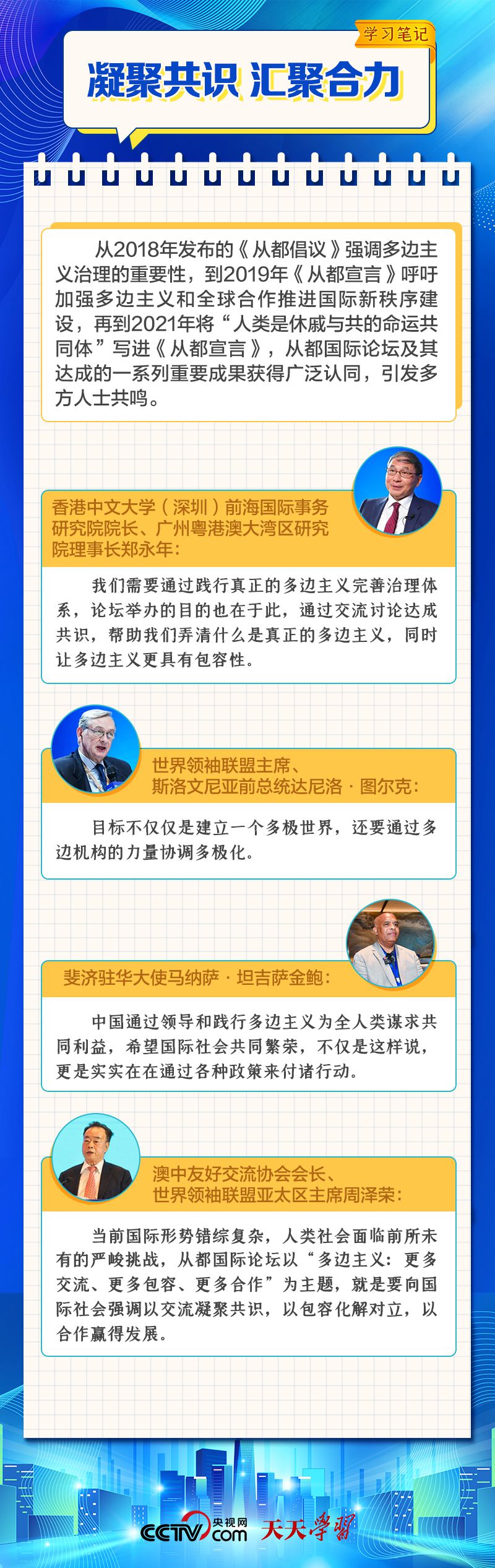 天天學(xué)習(xí) 12月4日,習(xí)近平主席在致“2023從都國(guó)際論壇”的賀信中強(qiáng)調(diào),面對(duì)前所未有的世界之變、時(shí)代之變和歷史之變,人類社會(huì)必須團(tuán)結(jié)起來(lái),堅(jiān)持互學(xué)互鑒、開(kāi)放包容、合作共贏,弘揚(yáng)全人類共同價(jià)值,共同建設(shè)更加美好的世界。