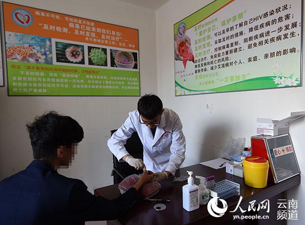 在大理州艾滋病防治咨詢中心 ,工作人員進(jìn)行HIV快速檢測(cè)。(李明 攝)