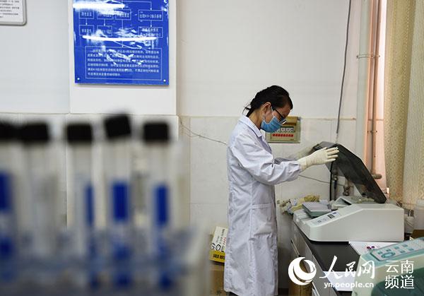 云南省祥云縣疾控中心工作人員在做HIV篩查。(李明 攝)