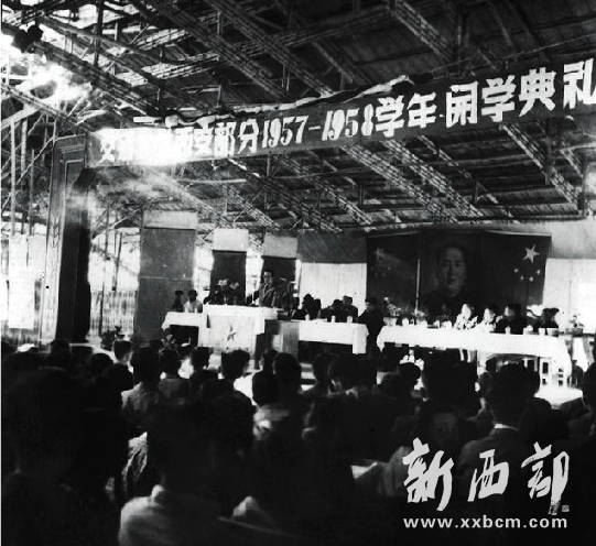 1957年8月,在草棚大禮堂舉行的開學典禮