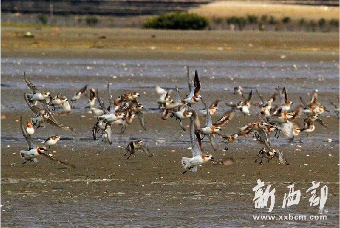 根據(jù)美境自然、廣西林勘院、廣西觀鳥會以及防城港的鳥類志愿者于2016-2017年的觀察與調(diào)查,在山心沙島共記錄了包括勺嘴鷸在內(nèi)的36種水鳥,其中數(shù)量較多的有環(huán)頸鸻、三趾鷸、黑腹濱鷸、白腰杓鷸、紅嘴鷗、灰林銀鷗等。這36種水鳥中,有28種是來此過冬的冬候鳥,除了全球極危的勺嘴鷸,還有瀕危的大濱鷸、易危的黑嘴鷗以及近危的黑尾塍鷸,遷徙水鳥多達上萬只。