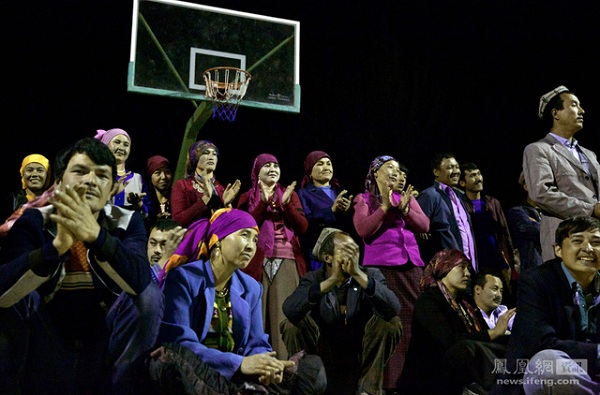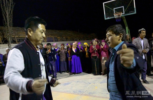 看到漢族干部與當(dāng)?shù)匕傩找黄疠d歌載舞,村民們紛紛前來(lái)圍觀拍手高喊:“亞克西!”。