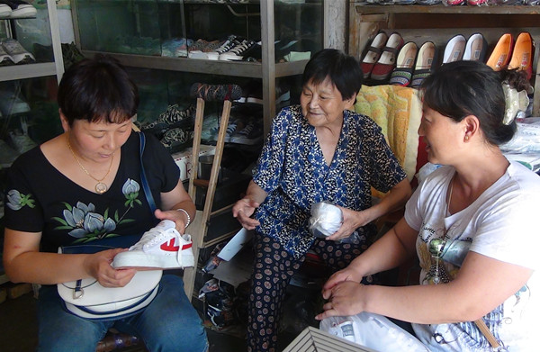 顧客來趙秀梅店中買鞋。圖片來源:陜西文明網