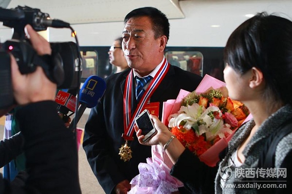 陜西傳媒網(wǎng)訊(記者 余誠忠)10月14日下午,陜西省出席第五屆全國道德模范評選表彰頒獎(jiǎng)典禮代表歸來,陜西省文明辦專職副主任鮑貽勇代表陜西省文明辦迎接載譽(yù)歸來的道德模范。