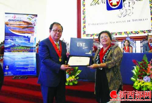▲2012年,秘魯國立特魯西略大學(xué)校務(wù)委員會鑒于吉狄馬加先生在詩歌創(chuàng)作領(lǐng)域和國際文化交流方面做出的
