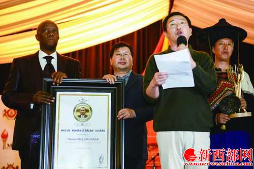 2014年10月,南非“姆基瓦人道主義獎”在南非巴特沃斯市頒獎。這個(gè)獎曾頒發(fā)給納爾遜· 曼德拉、肯·甘普、菲德爾·卡斯特羅等政要和文化名人。而今年,吉狄馬加成為第一個(gè)獲得該獎的亞洲人。