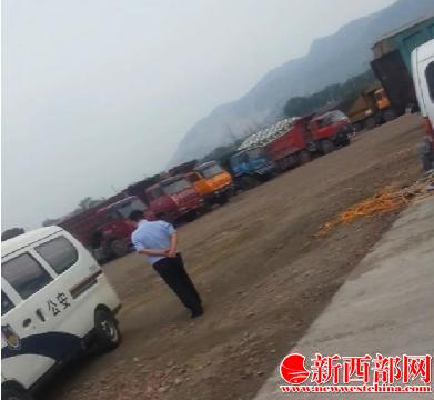 8月12日15時(shí)許,記者來(lái)到韓城市龍門(mén)鎮(zhèn)下峪口108國(guó)道附近看到:兩輛制式警車(chē)(車(chē)號(hào)分別為陜E6822警和陜E1860警)??吭趪?guó)道中央,多位穿著交警制服的協(xié)警正站在國(guó)道兩側(cè),揮手示意來(lái)往的運(yùn)煤貨車(chē)靠邊停車(chē)檢查。在現(xiàn)場(chǎng),記者并未發(fā)現(xiàn)身著制式警服帶隊(duì)的在編民警。