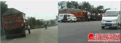 據(jù)當(dāng)?shù)厝罕姺从常n城龍門(mén)鎮(zhèn)下峪口附近,每天會(huì)有很多數(shù)量的運(yùn)煤貨車(chē)經(jīng)過(guò)。韓城市交警大隊(duì)的交警常年在此執(zhí)法,他們?cè)谲?chē)流量較大的馬路中間雙向攔截貨車(chē),以貨車(chē)隨意更改車(chē)型、號(hào)牌不清、未加蓋棚布等違規(guī)行為對(duì)貨車(chē)司機(jī)進(jìn)行處罰。在攔截的貨車(chē)達(dá)到一定數(shù)量時(shí),就將貨車(chē)帶到專門(mén)的“停車(chē)場(chǎng)”內(nèi),進(jìn)行扣押。司機(jī)被要求復(fù)印身份證、行駛證、駕駛證等相關(guān)證件,然后到停車(chē)場(chǎng)內(nèi)專門(mén)設(shè)立的辦公室接受“處罰”。