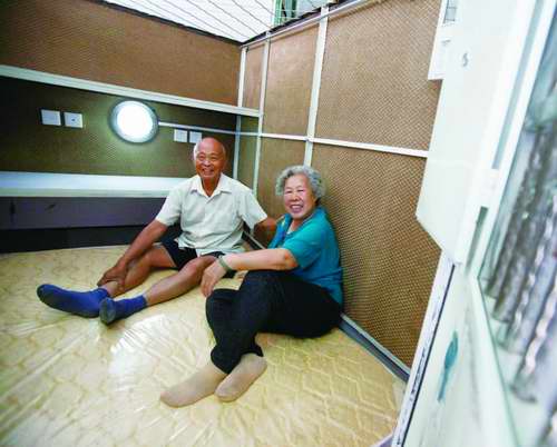 黃日新和夫人一起在他建造的“膠囊公寓”里