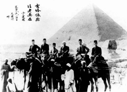 ▲1932年,留學(xué)埃及的馬堅(jiān)(上左二)與穆斯林朋友在埃及金字塔前留影。