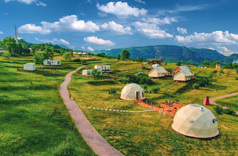 照金牧場(chǎng)微度假營(yíng)地,是一個(gè)夜晚看星星、白天看花海的好地方。營(yíng)地專門打造看星星的球型星空房、房車、野奢帳篷和林間小木屋。每到節(jié)假日,這里的幾個(gè)房型都被提前預(yù)訂一空。王西梅告訴記者,這里也是書院酒店的一部分,所以可以提供送餐服務(wù),游客可以選擇多種餐飲美食。