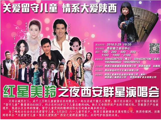 紅星美羚之夜西安群星演唱會5月29日唱響古城 “關愛留守兒童·情系大愛陜西” 費翔攜手孟庭葦為愛放歌