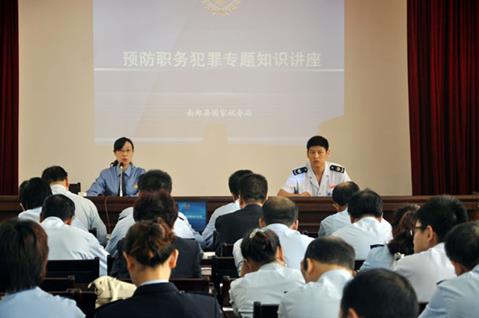 新西部網(wǎng)訊(張晉通訊錄鄭娟)為著力提高國家機(jī)關(guān)工作人員廉潔從政、依法從政意識和法治思維水平,近日,南鄭縣檢察院預(yù)防科應(yīng)邀為縣國稅系統(tǒng)機(jī)關(guān)干部、基層所所長共計(jì)120余人作了題為《預(yù)防稅務(wù)人員職務(wù)犯罪、促進(jìn)國稅事業(yè)健康發(fā)展》的涉稅瀆職犯罪專題講座。