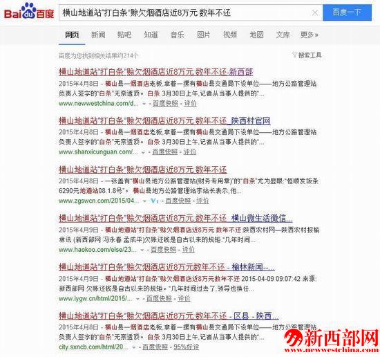 新西部網(wǎng)訊馮永春 孟成平)4月8日,本網(wǎng)報道了《橫山地道站“打白條”賒欠煙酒店近8萬元 數(shù)年不還》一文后,引起社會各界廣泛關(guān)注,被各大網(wǎng)站相繼轉(zhuǎn)載,一時間輿論嘩然,該縣多個部門負責(zé)人紛紛表示此事給橫山縣委縣政府“抹了黑”。