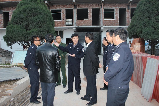 劉玉凱局長(zhǎng)陪同市局郭平社局長(zhǎng)、孟中華縣長(zhǎng)一行檢查看守所業(yè)務(wù)技術(shù)用房改擴(kuò)建工程