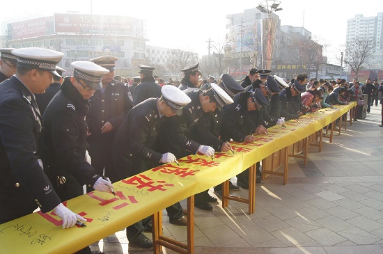 為確?;顒拥捻樌M行,大隊邀請縣委政法委副書記王銀起、縣文明辦主任閆柏平和縣公安局、安監(jiān)局、交通局、城管局等主要負責人以及寶運集團隴縣分公司、第一分公司、安成駕校、益民駕校、平安出租車公司、東城、西城社區(qū)、交通志愿者、縣交警大隊等共500余人參加。活動中,交警大隊大隊長韓希亮宣讀了《文明交通倡議書》,出租車公司駕駛員做了表態(tài)發(fā)言,縣文明辦主任閆柏平做了重要講話,最后,“抵制七類違法安全文明出行”簽名承諾活動,將“122”交通安全日活動推向高潮。