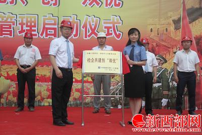 新西部網(wǎng)訊(張晉通訊員孫冰)8月6日上午,中建八局有限公司西北公司在承建的西北地區(qū)“地標(biāo)建筑”---西安綠地中心A座項(xiàng)目工地現(xiàn)場(chǎng)舉行“西安綠地中心A座項(xiàng)目勞動(dòng)競(jìng)賽、三號(hào)聯(lián)創(chuàng)、創(chuàng)‘雙優(yōu)’暨準(zhǔn)軍事化管理”啟動(dòng)儀式。陜西省建筑業(yè)協(xié)會(huì)會(huì)長(zhǎng)許龍發(fā),陜西省總建設(shè)工會(huì)主席周國(guó)寶,中建八局黨委副書記、工會(huì)主席于金偉、綠地集團(tuán)西安置業(yè)有限公司綠地中心總經(jīng)理譚洪偉、及項(xiàng)目全體管理人員、業(yè)主、監(jiān)理、分包單位及參建單位的工人代表參加了啟動(dòng)儀式。西安市蓮湖區(qū)檢察院黨組成員、副檢察長(zhǎng)朱文君與西北公司黨委副書記、紀(jì)委書記、工會(huì)主席王曉波共同為“檢企共建創(chuàng)‘雙優(yōu)’”揭牌。