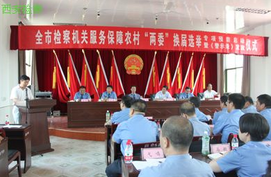 新西部網(wǎng)訊(張晉通訊員劉曉佳)7月18日,全市檢察機(jī)關(guān)服務(wù)保障農(nóng)村“兩委”換屆選舉專項(xiàng)預(yù)防啟動(dòng)儀式暨《警示錄》發(fā)放儀式在周至縣四屯鎮(zhèn)召開。西安市檢察院副檢察長廖平、預(yù)防處長韓宏哲、副處長白林,周至縣委政法委書記李永軍、縣檢察院檢察長沙瑞和西安市各區(qū)、縣檢察院主管預(yù)防副檢察長、科長及四屯鎮(zhèn)村領(lǐng)導(dǎo)、村民代表共70余人參加了會(huì)議。