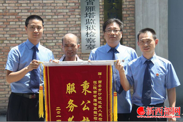 新西部網(wǎng)訊(記者宋海龍 張晉通訊員王天褀 陳小)7月25日上午,沙坡地區(qū)檢察院門前鞭炮響起,被無罪釋放的原雁塔監(jiān)獄服刑人員王江峰,給沙坡地區(qū)檢察院和駐雁塔監(jiān)獄檢察室送來了錦旗,感謝該院檢察院干警在其申訴期間不畏艱難、查微析疑,尋求事實真相,為他洗清不白之冤。