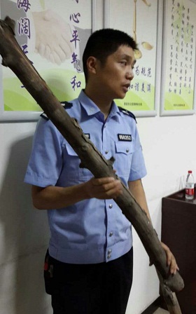 嫌疑人就是用這根木棍打傷多名受害人實(shí)施搶劫