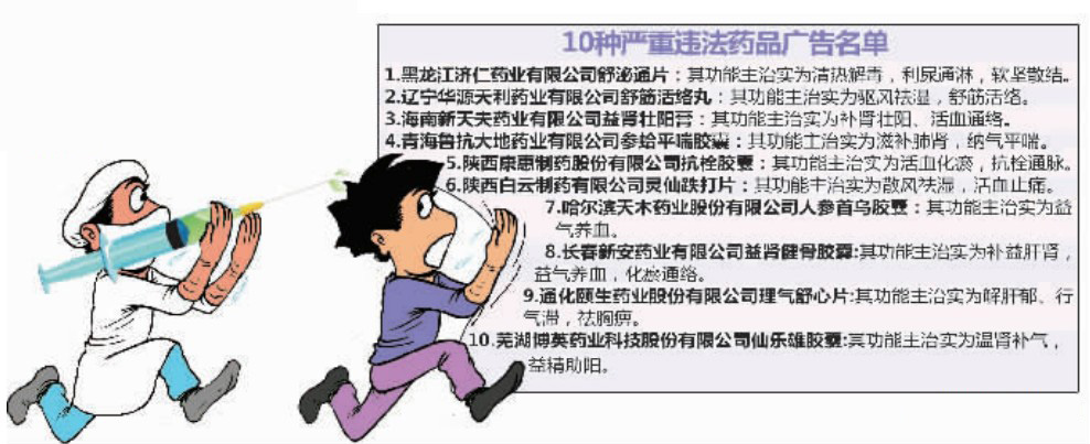 該負責人稱,國家規(guī)定藥品廣告不得擅自擴大藥品功能主治范圍,如只能治療風熱感冒的藥品,就不能夸大成“風熱風冷都能治”,否則不對癥的患者怎么吃藥也好不了。而這次被曝光的違法藥品,涉嫌未經審批或篡改廣告審批內容擅自在大眾媒體發(fā)布廣告,違法情節(jié)嚴重,宣傳的功能主治、適用范圍超出了食品藥品監(jiān)督管理部門批準的內容,并含有不科學地表示功效的斷言和保證等虛假內容,嚴重欺騙和誤導消費者。