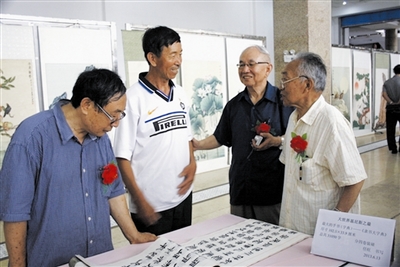 日前,在慶祝建黨92周年內(nèi)蒙古通遼市老年書畫展上,任旺(左2)參展的《隸書大字典》引起許多觀眾的興趣和關(guān)注。64歲的任旺是科爾沁區(qū)慶和鎮(zhèn)農(nóng)民,他用6年時間創(chuàng)作了世界最大的手書字典《隸書大字典》,尺寸為102.5×33.9厘米,分四卷裝裱,共計31050個字。今年4月,獲世界吉尼斯之最證書。