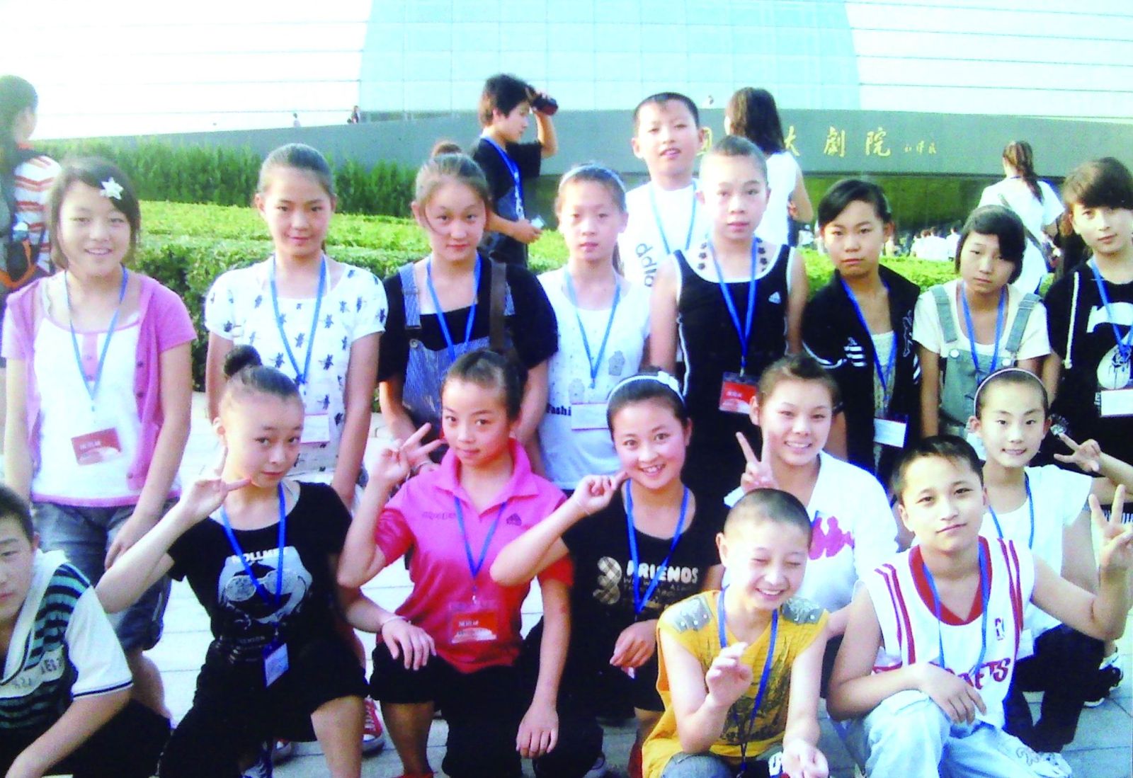 參加大型秧歌劇《米脂婆姨綏德漢》的學(xué)生在國家大劇院前合影留念