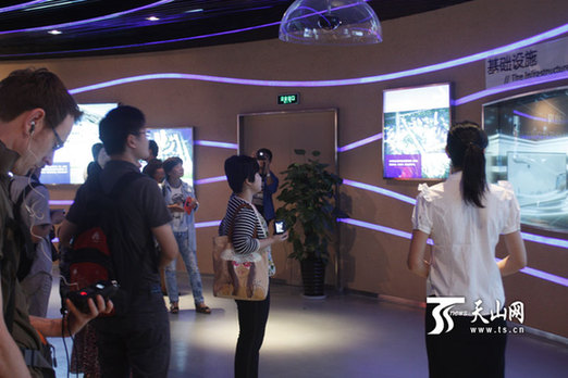 全國外文媒體新疆行采訪團(tuán)記者來到維泰大廈區(qū)域形象展示廳