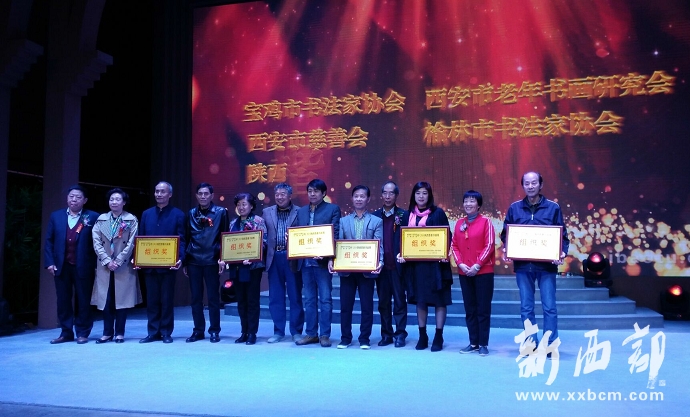 剪彩過后,活動開幕式在舞蹈《 霓裳羽衣 》節(jié)目中拉開帷幕。此次活動共有562位書畫藝術家和愛好者捐贈作品,選出177幅作品義展,活動為趙誠、郭濤、羅平、郭柱洲、盧山、王伯鋒、張亞斌、侯浩濤、唐文權、劉公信10位書畫家代表頒發(fā)“禧福祥六年西鳳 天朗控股集團”杯2018陜西慈善書畫展捐贈證書。為寶雞市書法家協(xié)會、陜西以琳書畫院、西安市慈善協(xié)會、西安市老年書畫研究院、榆林市書法家協(xié)會、陜西楷書研究會六個單位授予“禧福祥六年西鳳 天朗控股集團”杯2018陜西慈善書畫展“組織獎”榮譽稱號。