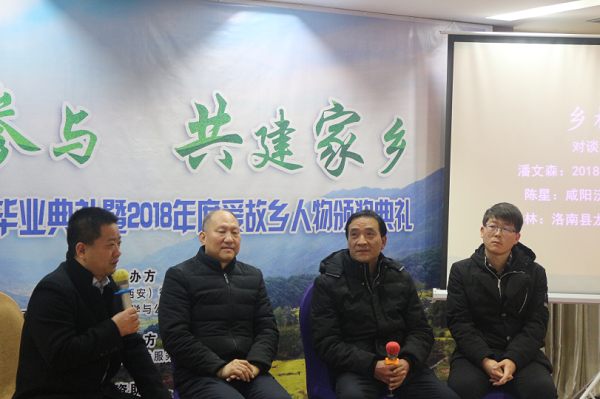 年度人物頒獎典禮由陜西益路人公益服務(wù)中心理事、西安外國語大學(xué)中文學(xué)院教師王昱娟博士主持,她逐一宣讀了2018年全國愛故鄉(xiāng)人物張長、2018陜西愛故鄉(xiāng)年度人物劉永生、潘文森、張選民、張效東等人的愛故鄉(xiāng)事跡和頒獎詞,并由鄭夢熊、韓松、劉金田等嘉賓為他們頒獎,五位愛故鄉(xiāng)人物分別發(fā)表了他們的獲獎感言。