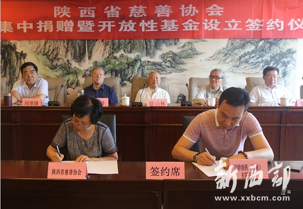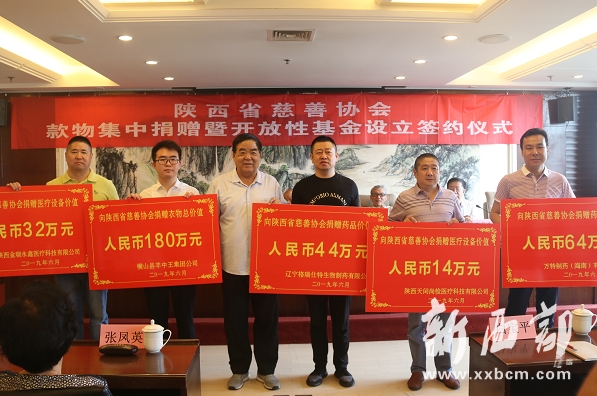 陜西省慈善協(xié)會舉行與11家企業(yè)款物集中捐贈暨開放性基金設(shè)立簽約儀式