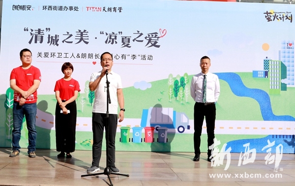 本次關(guān)愛環(huán)衛(wèi)工活動是朗朗長安螢火計劃——環(huán)保公益季系列活動之一,“我們在益起?世界才有光”,是螢火計劃的活動主旨。借此活動,希望讓更多人看到“最美城市美容師”的正能量,真正體諒和尊重每一位環(huán)衛(wèi)工作者的辛苦不易!同時也呼吁更多市民“關(guān)愛”、“尊重”環(huán)衛(wèi)工作者的勞動成果,從身邊小事著手,用自己的實際行動“分擔(dān)”城市環(huán)衛(wèi)工人的辛苦付出。
