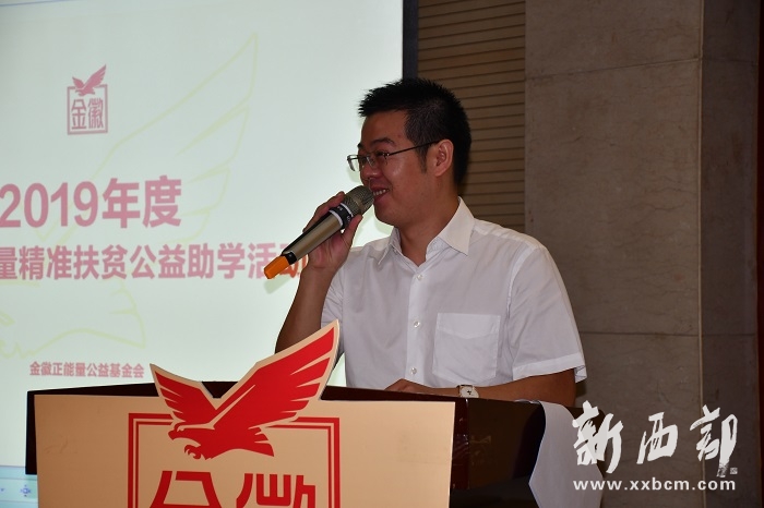 金徽酒股份有限公司董事、副總經(jīng)理、金徽酒銷售西安有限公司總經(jīng)理廖結(jié)兵先生在講話中說,金徽酒業(yè)是長江上游、嘉陵江畔隴南徽縣一家大型白酒釀造基地,2016年3月10日,金徽酒在上海證券交易所A股掛牌上市。多年來,他們在自我做大做強的同時,不忘回饋社會,累計上繳稅費16億之多,并長期從事慈善公益活動。金徽正能量基金會是由金徽酒投資人李明先生和愛人杜楠女士、金徽礦業(yè)和金徽酒股份有限公司共同出資組建,具有獨立法人資質(zhì)的非公募性、非營利性慈善組織,基金會以“實業(yè)報國,扶危濟困,回報社會”為宗旨,自基金會成立以來,積極參與各項社會公益活動,先后為抗震救災、抗洪搶險、扶貧助學、慈善關(guān)愛等社會公益活動累計捐助資金超過1億元。為了傳遞“金徽”正能量,今年,金徽正能量公益金會、金徽酒股份有限公司再次與西安市慈善會合作,在西安開展“金徽精準扶貧公益助學活動”。廖結(jié)兵先生還表示,為了向社會獻上一份愛心,從2018年起,金徽正能量公益基金會將連續(xù)三年在甘肅、陜西、寧夏、新疆等西北四省區(qū)聯(lián)合發(fā)起“金徽酒正能量精準扶貧公益助學”大型公益活動?;顒右試医n立卡的貧困戶、貧困家庭學子為主要對象,幫助他們圓大學夢并以他們的實際行動,弘揚傳遞正能量,承擔企業(yè)的社會責任。
