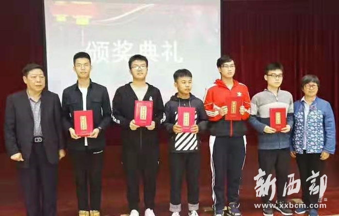 趙浩義副會(huì)長(左一)向獲得一等獎(jiǎng)團(tuán)隊(duì)頒獎(jiǎng)