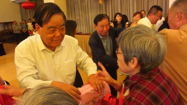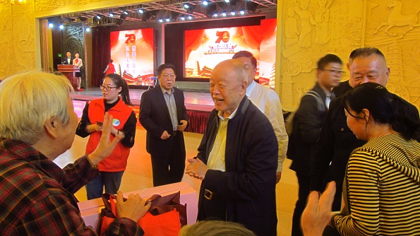 參會(huì)領(lǐng)導(dǎo)和捐贈(zèng)企業(yè)、個(gè)人代表現(xiàn)場(chǎng)慰問部分老年人。圖為省級(jí)老領(lǐng)導(dǎo)徐山林向老年人頒發(fā)慰問品。