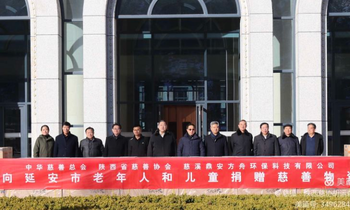 2020年12月14日,中華慈善總會、陜西省慈善協(xié)會、慈溪鼎安方舟環(huán)??萍脊鞠蜓影簿栀涥P(guān)愛老人和兒童款物儀式在延安八一敬老院舉行。全國人大社會建設(shè)委員會副主任委員、中華慈善總會會長宮蒲光,陜西省委常委、延安市委書記徐新榮,省人大原副主任、省慈善協(xié)會會長吳前進出席并講話,中華慈善總會秘書長邊志偉、宣傳部部長曾春光 ,延安市委常委、副市長高昕昱,省慈善協(xié)會副會長張文亮,延安市慈善協(xié)會會長郝飚,延安市委秘書長張世保,延安市民政局局長何樹德、市退役軍人事務(wù)局局長牛永紅,慈溪鼎安方舟環(huán)保科技有限公司董事長汪慶福、總經(jīng)理李先強等參加捐贈活動,省慈善協(xié)會常務(wù)副會長李榮杰主持儀式。