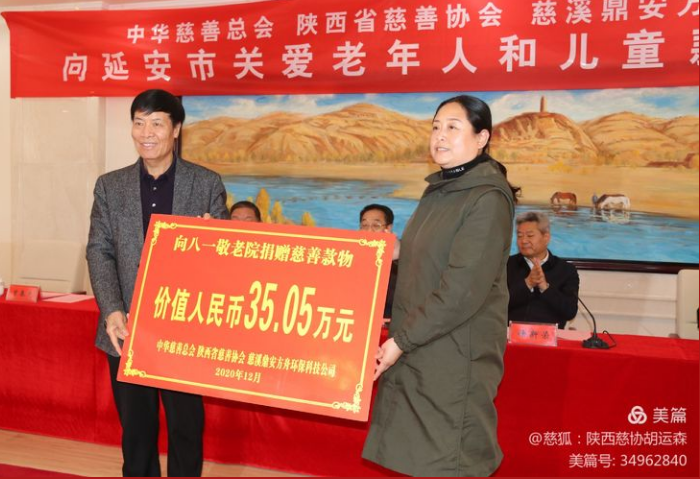 情系革命圣地 關(guān)愛一老一小 中華慈善總會陜西省慈善協(xié)會慈溪鼎安方舟環(huán)??萍脊鞠蜓影簿栀涥P(guān)愛老人和兒童款物1201萬元