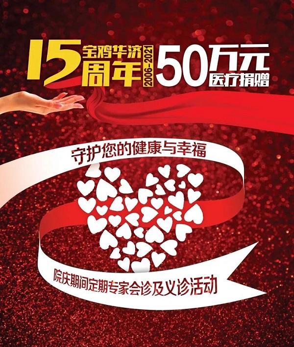寶雞華濟醫(yī)院建院15周年以來,堅持“以人為本、病人第一”的服務理念,按照國家醫(yī)療體制改革的規(guī)定,使醫(yī)院的各項工作逐步規(guī)范化、科學化的發(fā)展軌道,保證醫(yī)療工作順利進行的同時,致力于慈善事業(yè)的發(fā)展。