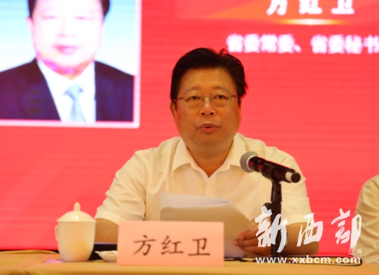 ▲省委常委、省委秘書長方紅衛(wèi)宣讀省委書記劉國中、省長趙一德的批示