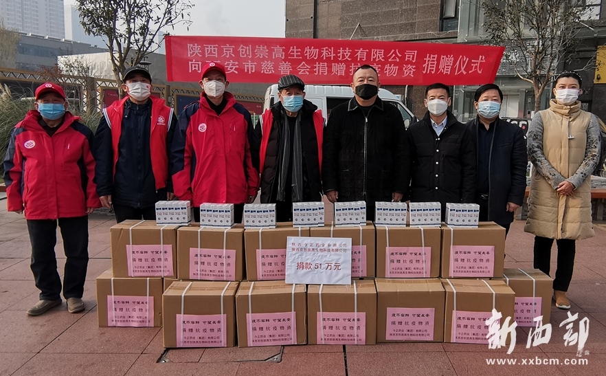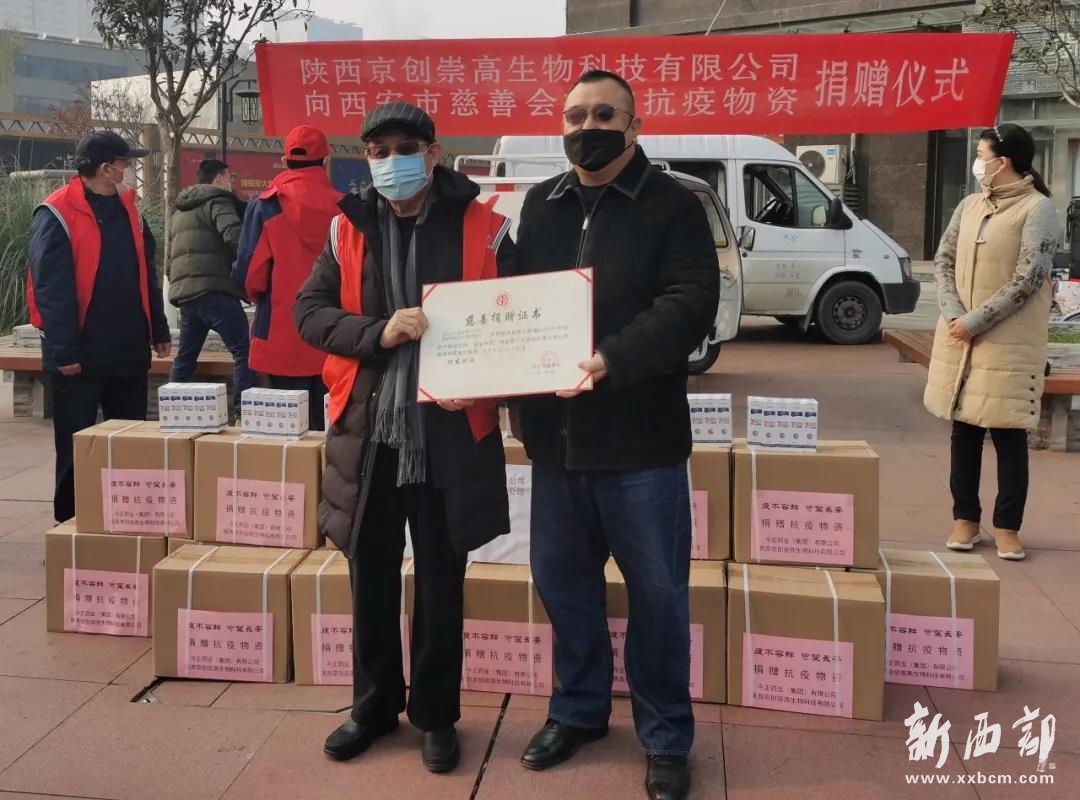 今天上午,西安市慈善會為該兩家愛心企業(yè)舉行愛心捐贈儀式。儀式由副會長龐武平主持。西安市慈善會會長朱智生,副會長王健康、倪保文,副秘書長兼辦公室主任劉友財及西安市工商聯(lián)副主席、今正藥業(yè)集團董事長閆偉,陜西省公羊會公益救援促進(jìn)會秘書長劉坤,陜西京創(chuàng)崇高生物科技有限公司代表田有民等參加了儀式。