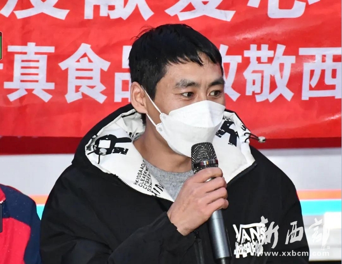 ▲丁明賀受老韓頭清真食品有限公司董事長(zhǎng)回春偉的委托,抵達(dá)西安在捐贈(zèng)儀式上發(fā)言。