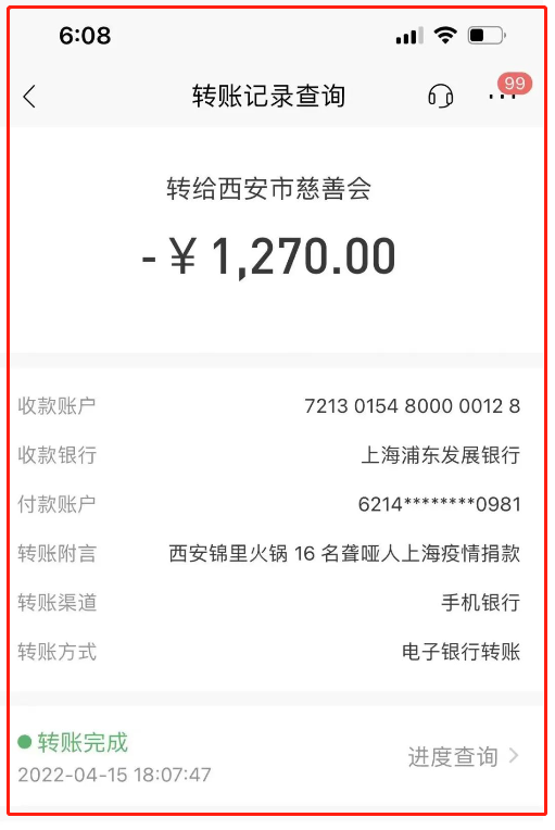 4月15日,西安市慈善會收到了一筆1270元的捐款。捐款備注著: 16名聾啞人向上海疫情捐款。
